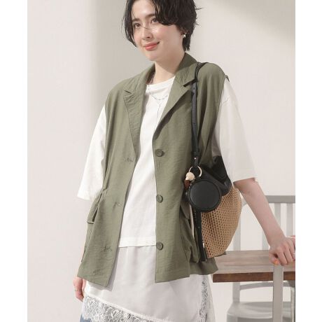 絞って変わる、美シルエットの上品ミリタリーベストドローストリングでシルエットの変化を楽しめるミリタリーテイストのベストです。ウエストを絞ればすっきりとしたメリハリのあるラインに、ゆるめればリラックス感のある着こなしが叶います。軽やかでやわらかな風合いの素材は、上品さを感じさせながらもカジュアルに取り入れやすいのが魅力です。フロントの大きめポケットが実用性とデザイン性を兼ね備え、コーディネートのアクセントになります。シャツやカットソーに重ねるだけで旬のレイヤードスタイルが完成し、季節の変わり目にも活躍します。きれいめにもカジュアルにもなじみやすく、幅広いスタイリングに対応できる万能アイテムです。透け感[ややあり]