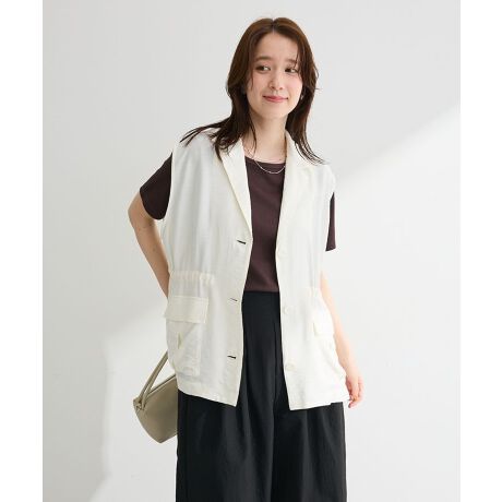絞って変わる、美シルエットの上品ミリタリーベストドローストリングでシルエットの変化を楽しめるミリタリーテイストのベストです。ウエストを絞ればすっきりとしたメリハリのあるラインに、ゆるめればリラックス感のある着こなしが叶います。軽やかでやわらかな風合いの素材は、上品さを感じさせながらもカジュアルに取り入れやすいのが魅力です。フロントの大きめポケットが実用性とデザイン性を兼ね備え、コーディネートのアクセントになります。シャツやカットソーに重ねるだけで旬のレイヤードスタイルが完成し、季節の変わり目にも活躍します。きれいめにもカジュアルにもなじみやすく、幅広いスタイリングに対応できる万能アイテムです。透け感[ややあり]
