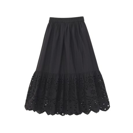 軽やかに揺れる、上品レースの主役スカート繊細なスカラップ刺しゅうが裾に広がり、歩くたびにやさしく揺れる上品な印象の一枚です。程よくボリュームのあるギャザーシルエットが女性らしさを引き立て、気になるラインも自然にカバーしてくれます。ウエストはゴム仕様で締め付け感が少なく、リラックスした穿き心地を叶えます。ペチコート付きなので透け感を気にせず安心して着用できるのも嬉しいポイントです。シンプルなトップスと合わせるだけで華やかなスタイルが完成し、デイリーからお出かけまで幅広く活躍します。透け感[ややあり]