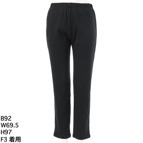 シルエットは裾に向かって細くなるゆったりめのスキニーライン。ヒップから脚にかけてやさしくフィットしながらも、締め付け感が少なく、ひざの曲げ伸ばしもスムーズでストレスフリーな着心地です。