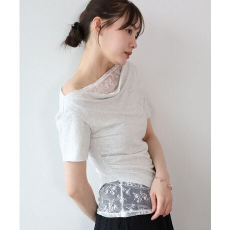 一枚で着映えるレースドッキングのドレープカットソー