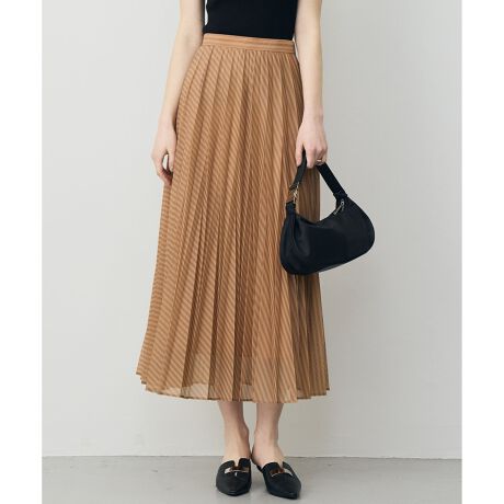 軽やかなシアー素材と立体プリーツが魅せる、大人の洗練ストライプスカート