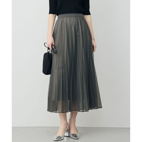 軽やかなシアー素材と立体プリーツが魅せる、大人の洗練ストライプスカート