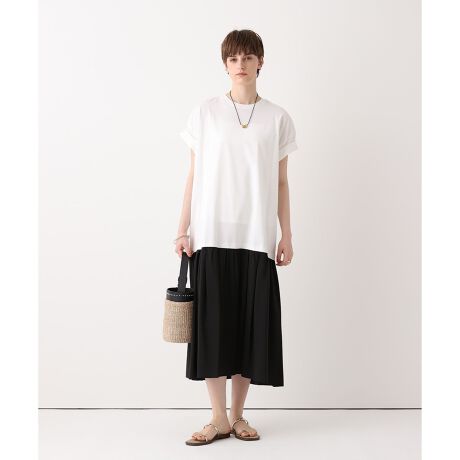 カジュアルなカットソーと上品なシルク混の素材をドッキングする事で、程よいカジュアル感を漂わせつつ上品さを感じさせるワンピース。