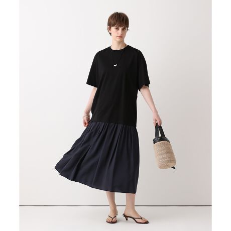 カジュアルなカットソーと上品なシルク混の素材をドッキングする事で、程よいカジュアル感を漂わせつつ上品さを感じさせるワンピース。