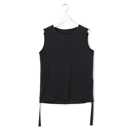 ■デザイン毎年ご好評いただいているマットスキューバシリーズから、デザインインナーが登場しました。両サイドに配したドロストコードで、お好みに合わせてギャザーの分量を調整できるデザインです。下着のストラップが見えにくい肩幅に設定したノースリーブ型で、ジャケットやカーディガンのインナーとしてはもちろん、一枚着としてもスタイリッシュに決まります。オンオフ問わず着回せる汎用性の高さが魅力のアイテムです。