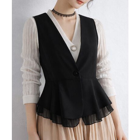 上品なペプラムデザインが目を引くVネックジレベスト。