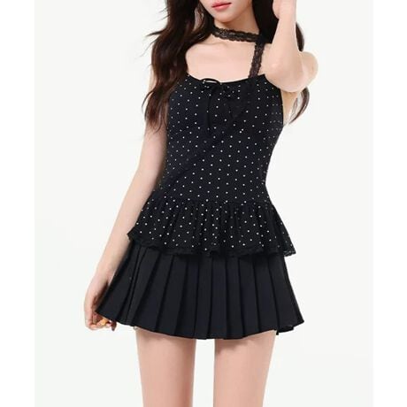 ドット柄キャミソール レースタイ付き夏服