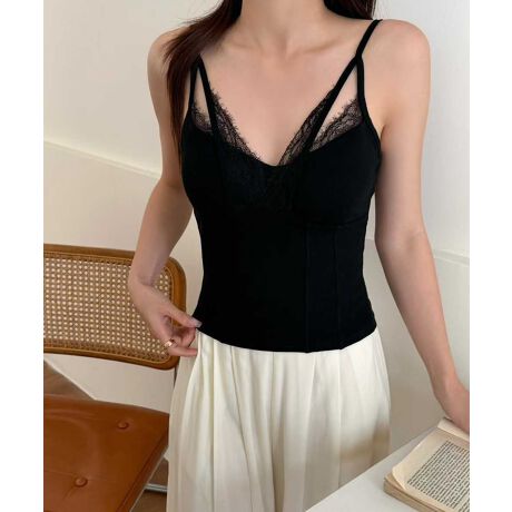 胸元のレースが透明感爆上げコルセット風見えキャミソール。