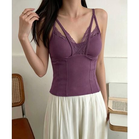 胸元のレースが透明感爆上げコルセット風見えキャミソール。