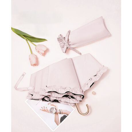 閉じても開いてもフリルが華やかに映える、フェミニンな折りたたみ傘。