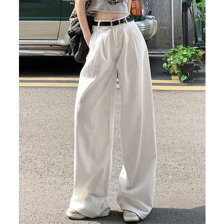 ハイウエスト×ワンタックのゆったりシルエットで体型をカバーしつつ、脚長見えとスタイルアップが狙える。