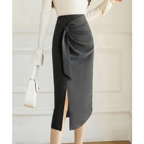 ウエストリボンタイトスカートスリット入り