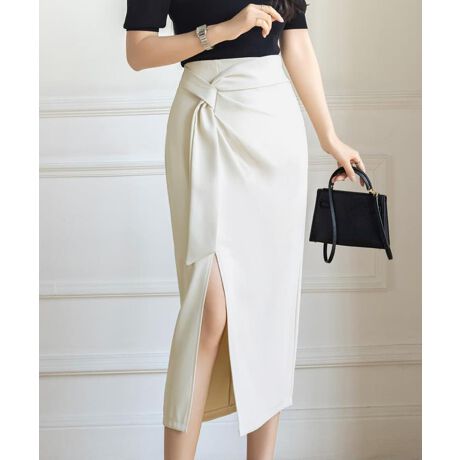 フロントタック入りで腰回りを自然にカバーするハイウエストタイトスカート。