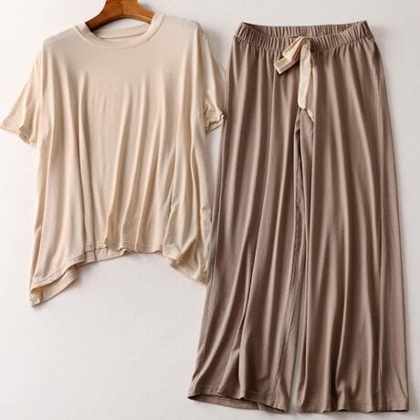 ロングパンツと半袖トップスのルームウェア2点セットです