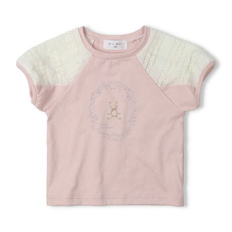 ネットショップと専門店、セレクトショップなどでの限定のアイテム!直営店では直営オンラインショップ「こどもの森e-shop」各店のWEB店限定のみでの販売になります。【直営実店舗での販売はありません。】丸っこい袖とレースが女の子らしい半袖Tシャツ。くまとレースのプリント入り。【アイテム】トップス シンプル ガーリー フェミニン カジュアル お洒落 オシャレ かわいい 可愛い 普段着 デイリーウェア お出かけ着 お外着 お外遊び着 子ども こども 女児 女の子 ガールズ キッズ ベビーサイズ トドラーサイズ 幼稚園 保育園 小学校 通園 通学 小学生 2026年春夏物新作 丸高衣料 オフホワイト 白色 ピンク クマ 動物 アニマル ウィルメリー