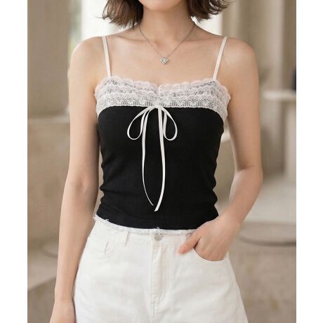 繊細なレースとリボンが可愛らしさを引き立てるカップ付きキャミソール。