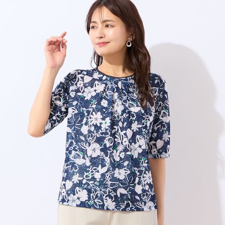 薄手で涼やかな肌当たりが魅力の素材に、手描き調の花柄をプリントしました。