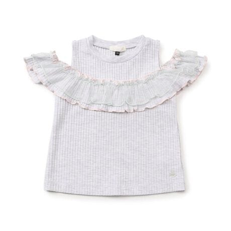 apres les cours(アプレレクール)の半袖Tシャツ「WEB限定 2way肩あきチュール配色トップス」は、ナチュラルなスタイルにさりげなくデザインをプラスしたおしゃれアイテム*