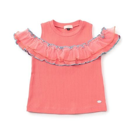 apres les cours(アプレレクール)の半袖Tシャツ「WEB限定 2way肩あきチュール配色トップス」は、ナチュラルなスタイルにさりげなくデザインをプラスしたおしゃれアイテム*
