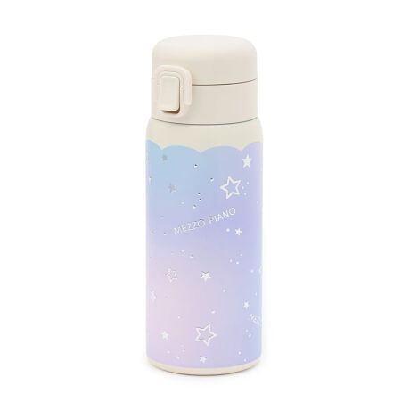 夏の暑い時期、熱中症対策・水分補給に欠かせないステンレスボトルです。真空二重構造で「冷たさ」をしっかりキープ!朝入れた氷も溶けにくく、下校時までひんやりとした温度が続きます。ワンタッチで開けられるタイプでお子様にも使いやすいボトルを採用しました。キラキラ輝くシルバー箔のプリントが涼しげな印象に。使い勝手のいい350mlサイズで、リュックのサイドポケットにもスッポリ入ります。タンブラー(品番:6062433)とお揃いの柄なので外出用は水筒、おうち用はタンブラーでセットでご使用いただくのがおすすめです。Lピンク土台はリボン柄、サックス土台はグラデーションスターロゴ柄と土台色によって柄が異なります。