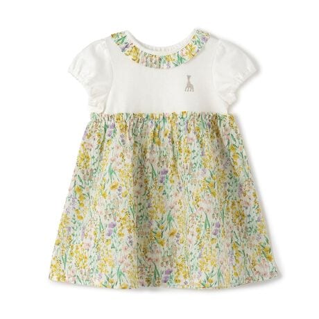 ドビー天竺と小花柄を組み合わせたナチュラルな印象のワンピースです。やわらかなコットン100%素材でやさしい肌当たりに。ウエストの切り替えから広がるシルエットになっており、1枚でコーディネートが決まります。普段着にもお出かけコーデにも使えるアイテムです。内側にお名前を記入できるタグつき。【おすすめの着用時期は春夏シーズン】