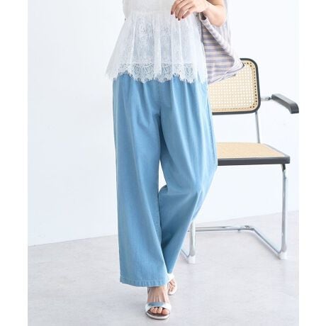 ひんやり軽やか、涼しく叶う美シルエットデニム接触冷感のようなさらりとした肌ざわりで、暑い季節も快適に過ごせるワイドデニムです。ウエストはゴム仕様で締め付け感が少なく、リラックスしたはき心地を叶えてくれます。2タックデザインが程よい立体感を生み、気になるお腹まわりやヒップラインを自然にカバーしてくれるのも嬉しいポイントです。ゆったりとしたシルエットながらも落ち感があり、すっきりとした印象で着こなせます。Tシャツやブラウスと合わせるだけで、大人可愛いカジュアルスタイルが完成します。透け感[なし]