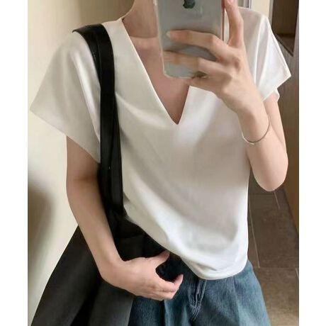 コットンVネックシームレスTシャツ 半袖