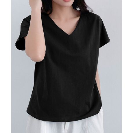 コットンVネックシームレスTシャツ 半袖
