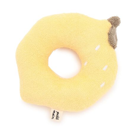 フルーツを立体的に表現したラトルです。赤ちゃんが心地よく遊べるよう、やさしい肌当たりに仕上げました。小さな手でも握りやすいリング型のデザイン。お家に置いておくだけで可愛いアイテムなので、ちょっとしたプレゼントにもおすすめです。