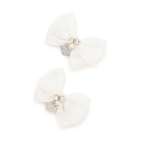 いつものヘアスタイルにプラスするだけで可愛らしいアクセントになるリボンクリップです。片手でつけやすいのがうれしいポイント。リボンの中心にはラインストーンとパールを添えて、華やかに仕上げました。クリップはヘアゴムタイプと違って付けやすく、お団子ヘアや三つ編み、ハーフツインなどの最後のアレンジにプラスしやすいのでオススメアイテムです。