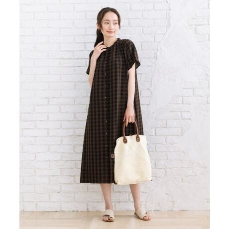 落ち着いた配色のギンガムチェックが大人っぽく映えるロングワンピース。