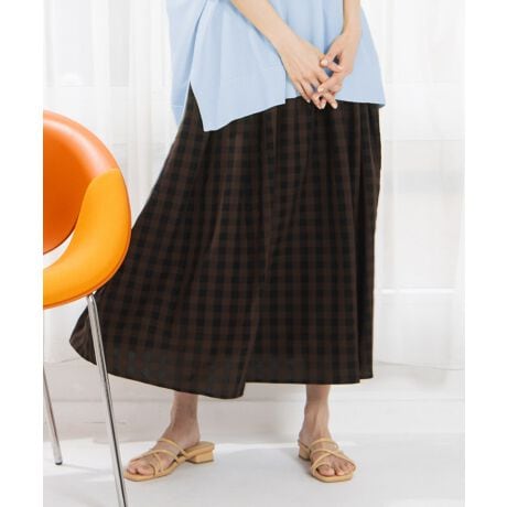 落ち着いた配色のギンガムチェックが魅力の、ヴィンテージライクなロングスカート。