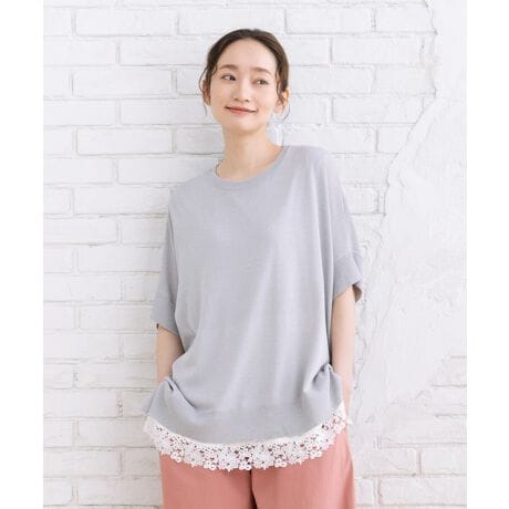 落ち感のあるドライレーヨン素材で、さらっと軽やかに着られるニットプルオーバー。