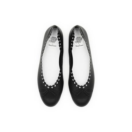 ラウンドトゥにフラワーモチーフのカットライン、さらにさりげないハートのくり抜きを加え、遊び心のある仕上がりに。