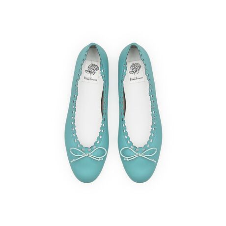 ラウンドトゥにフラワーモチーフのカットライン、さらにさりげないハートのくり抜きを加え、遊び心のある仕上がりに。