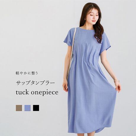 サップタンブラー ワンピース 夏ワンピース タックワンピース フレアワンピース ウエストゴムワンピース 軽量ワンピース 涼しいワンピース セットアップ対応 通勤コーデ