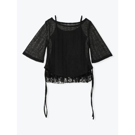 [SET]ブロークンシアーサイドリボントップス×レースフリルキャミソール