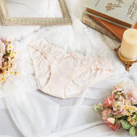 足口にはレースを使用し、ボトムスへも響きにくくなっております。