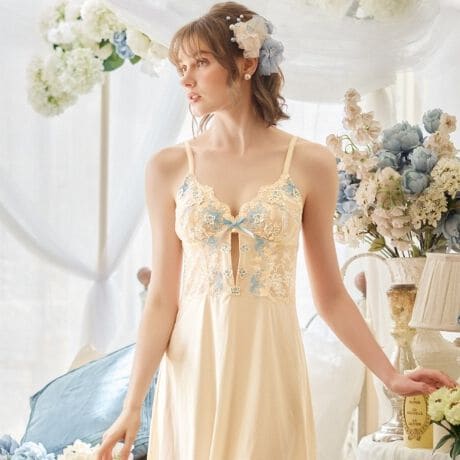 バスト中央にほどこしたパール調のチャームは、クラシカルで洗練された印象をプラス。