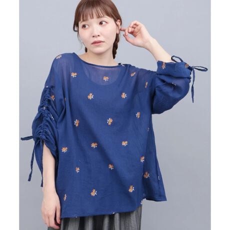 Shanti Shanti コットンクレープ刺繍プルオーバー