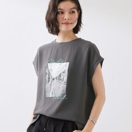 フォトプリントと、箔を効かせたフレンチシックなロゴの2タイプで、ほどよく遊び心がありながら大人っぽく、きれいめにも自然に馴染みます。