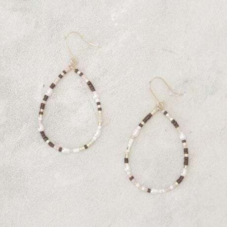 しずく型のシルエットに彩り豊かなビーズをあしらった、存在感たっぷりのドロップデザインピアス。