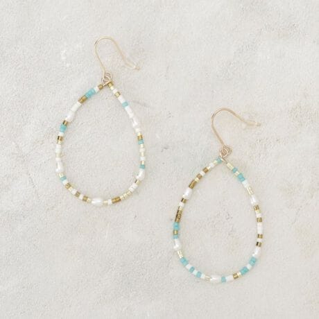 しずく型のシルエットに彩り豊かなビーズをあしらった、存在感たっぷりのドロップデザインピアス。