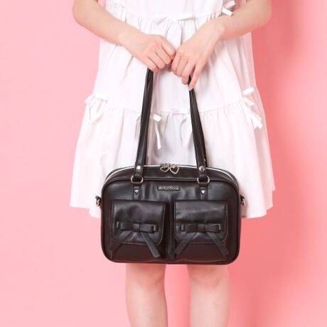 ・ハート型のファスナーチャームとリボンモチーフが可愛いアクセントになったバッグです。