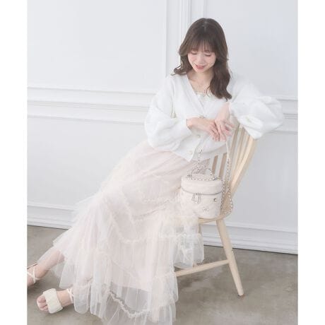 繊細なチュールをたっぷりと重ねた、存在感のあるティアードスカート。