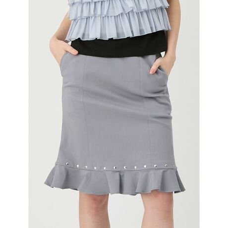 <b>【スタッズの辛口アクセントとフリルの甘さが共演する、モードなミディ丈スカート】