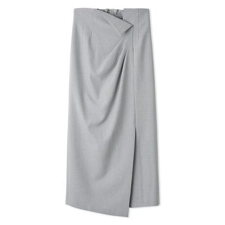 <b>【ハンドウォッシャブル・防シワ】【優美なタックドレープが目を引く洗練されたストレートスカート】</b>