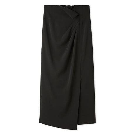 <b>【ハンドウォッシャブル・防シワ】【優美なタックドレープが目を引く洗練されたストレートスカート】</b>