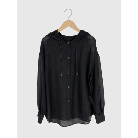 トレンド感のあるフード付きシャツを軽やかなメッシュ素材で仕立てた1枚。